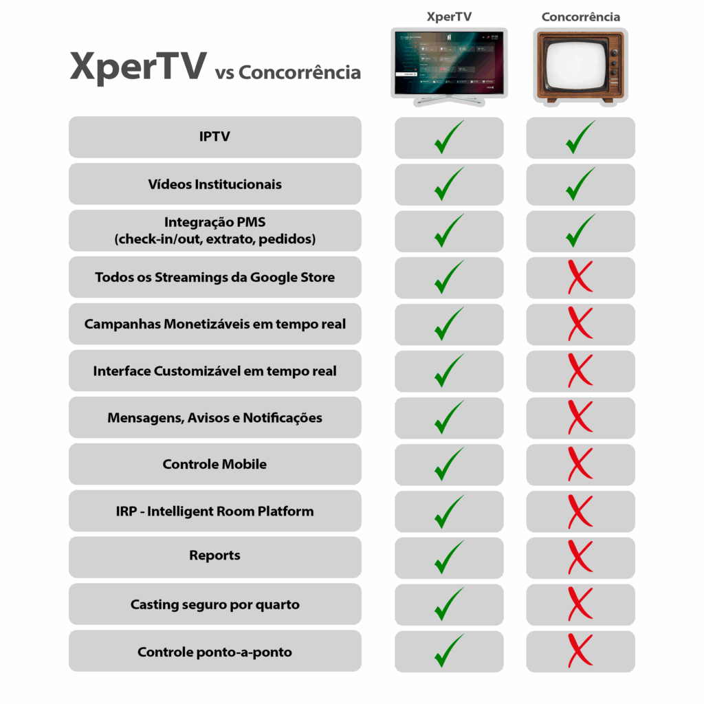 Veja abaixo todas as diferenças entre a XperTV e as demais TVs inteligentes no mercado: